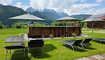 Entspannen Sie in unserer Ilgusauna mit wechselnden Aufgüssen und atemberaubendem Bergblick.
